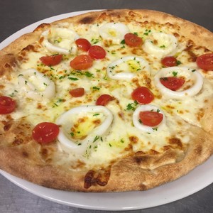 Mozzarella, Olio E.V.O., Prezzemolo Fresco, Pomodorini Freschi, Anelli di Calamaro